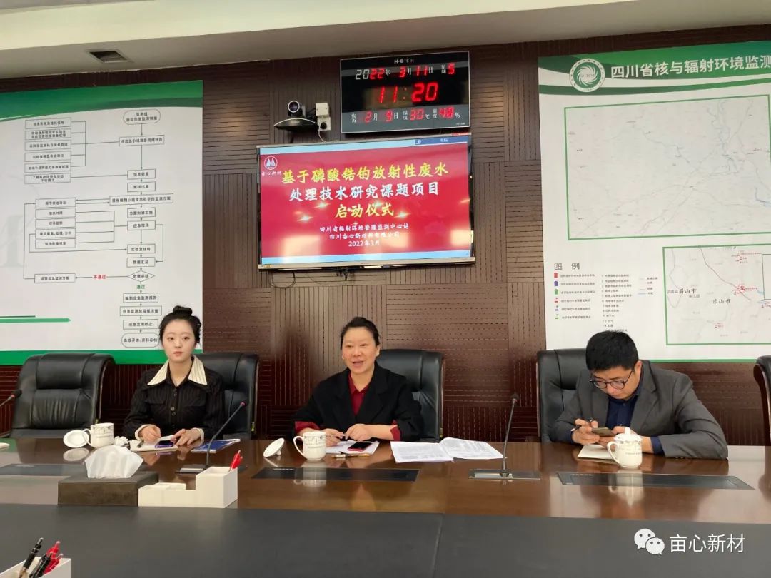2022年3月11日,基于磷酸鋯的放射性廢水處理技術(shù)研究課題項目啟動儀式在四川省輻射環(huán)境管理監(jiān)測中心站(以下簡稱省輻射站)隆重舉行。省輻射站黨委書記、站長鄧曉欽,畝心新材董事長魏官惠出席啟動儀式。